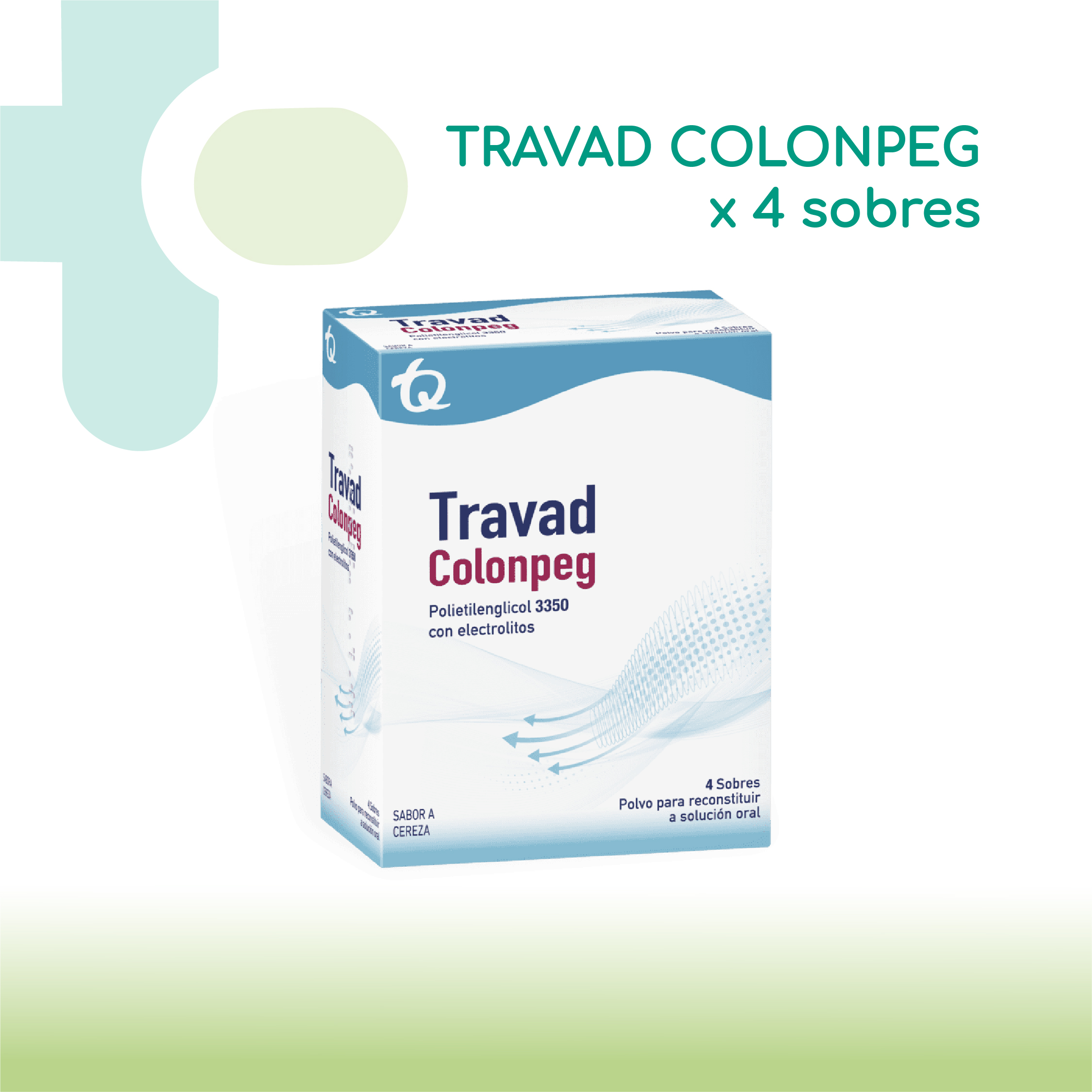 Polietilenglicol 3350 – 105g Bicarbonato de sodio – 1.43g Cloruro de sodio – 2.8g Cloruro de potasio – 0.37g
